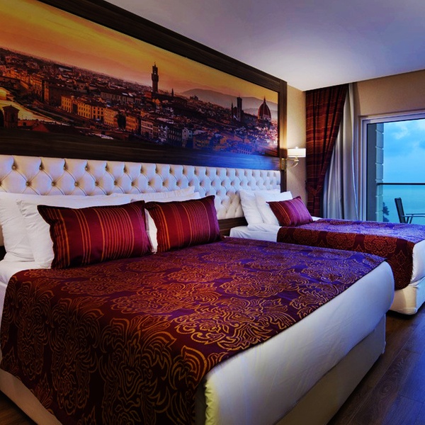 The resort’s bedrooms are all air-conditioned and blend modern style with traditional Turkish decor touches. The rooms come fitted out with flat-screen TVs, telephones, minibars, and safety deposit boxes. En suite bathrooms feature hairdryers and complimentary toiletries. Guests can also enjoy large windows and balconies offering the views of the sea or the pool.