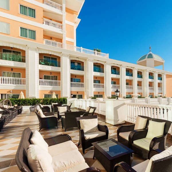 - Stay for one (sharing basis) in a standard double lateral side sea view room with ultra all inclusive, fruit basket on arrival, wine on arrival, 25% off spa treatments and hairdresser, two a la carte restaurant meals per person per stay, and late checkout by 2pm on request