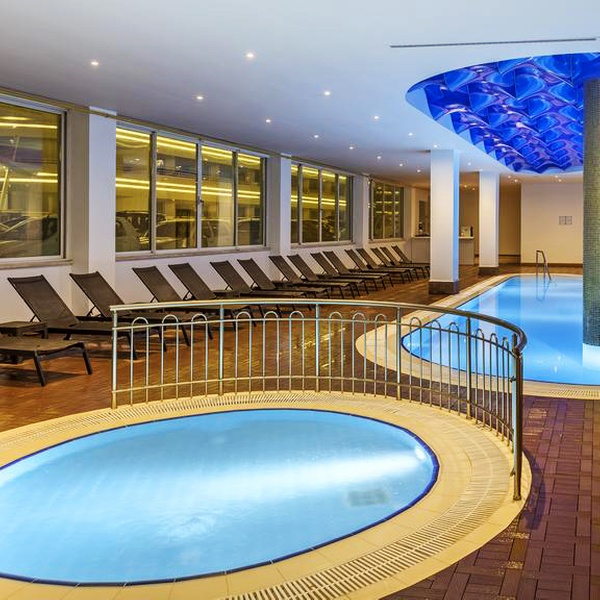 - Indoor infinity pool and outdoor pools; choice of on-site restaurants; spa area