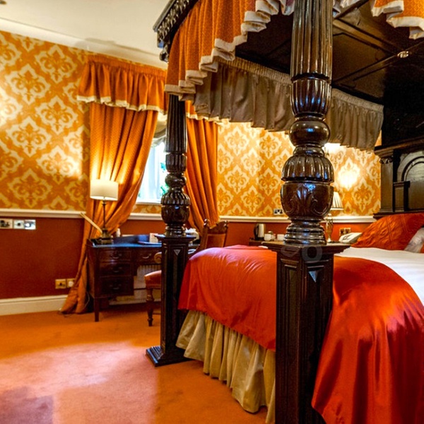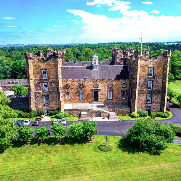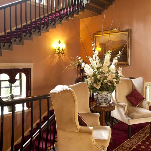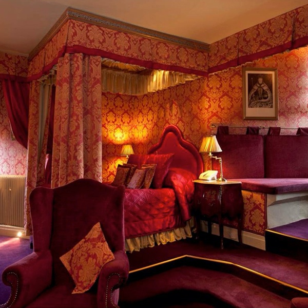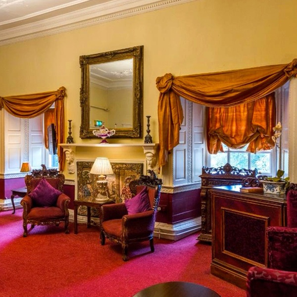The castle combines period features with modern amenities, providing individually designed bedrooms fitted with elegant curtains, wing-back armchairs, and classic pieces of furniture.