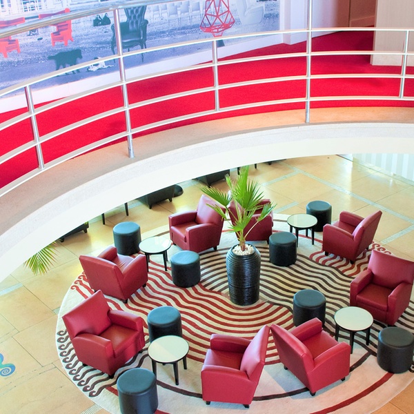 Contemporary rooms are made up in bold colour combinations and boast modern art pieces, keeping with the theme of the building itself. They all offer Wi-Fi access, flat-screen TVs and a seating area with coffee and tea facilities. En-suite bathrooms ensure patron’s privacy. Upgraded rooms charm with the picturesque sea view from the windows.