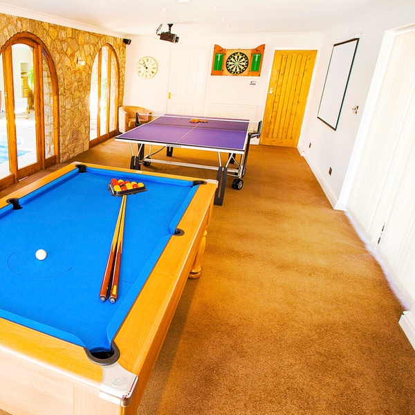 Brookway Lodge features two lounges, a conservatory, a large modern kitchen, eight bedrooms with smart LED TVs (three of which have en suite bathrooms), two family bathrooms, a wet room, hot tub, an indoor swimming pool, a media room, games room, table tennis, darts board, children’s play area, washing machine and tumble dryer, fridge and ice machine, drinks fridge, two dishwashers, a log fire and a coffee machine.