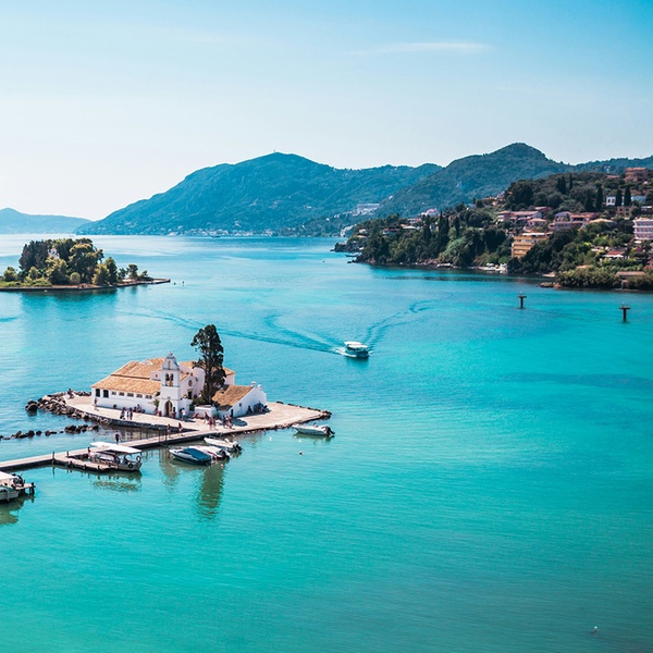 Sunning itself in the Ionian Sea, Corfu is known as one of the greenest of the Greek islands. Outlined by evergreen landscapes, olive groves and fragrant citrus or orange trees, the island's coastal patches have become a place of pilgrimage for tourists seeking to indulge in the Mediterranean sun and crystal waters.