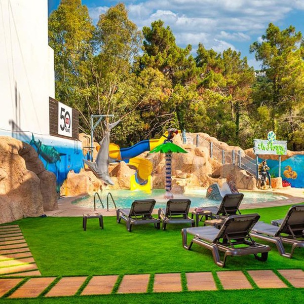 On-site bar-restaurant feeds hungry tummies with a selection of international cuisines, including variety of pizzas. The youth can enjoy their own corner at the play area, while adults play snooker or enjoy some classic arcade games. Time can also be spent by one of the two outdoor pools.