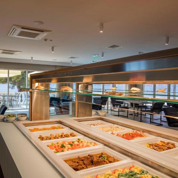 Meals can be enjoyed at the onsite restaurant with a panoramic view of the coast, as well as on the terrace.