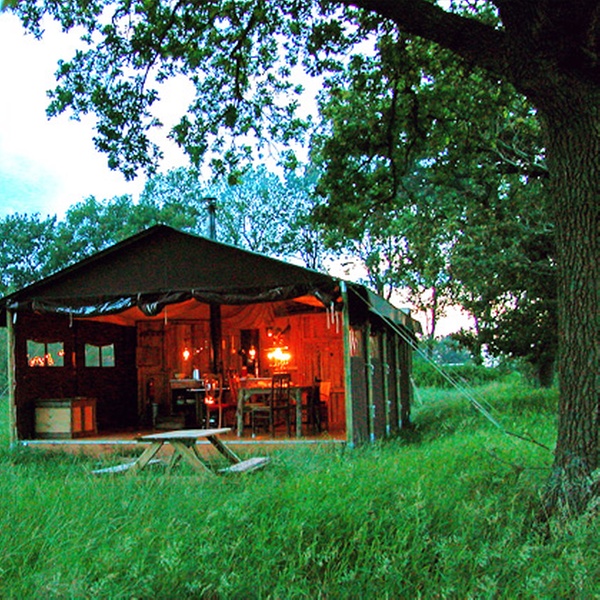 - Each tent is well equipped with a cooking stove (with wood included), a sofa, a cupboard bed, a bunk bed, a master bedroom, bed linen, and more