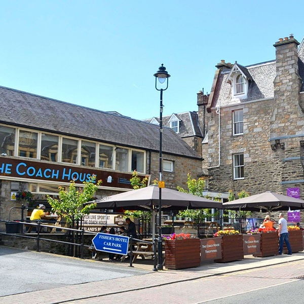 Dining and socialising are at the heart of the Fisher’s Hotel experience. The Garden Room serves as the hotel’s main restaurant, while additional spaces include the Ballroom and the Atholl Lounge. Residents can unwind in The Lounge bar within the hotel, while the adjacent Coach House Bar offers a relaxed atmosphere with a fantastic selection of food and drinks, including award-winning authentic Italian pizza available from Friday to Sunday. Live sports are shown regularly, and weekend live entertainment adds to the welcoming, vibrant atmosphere.