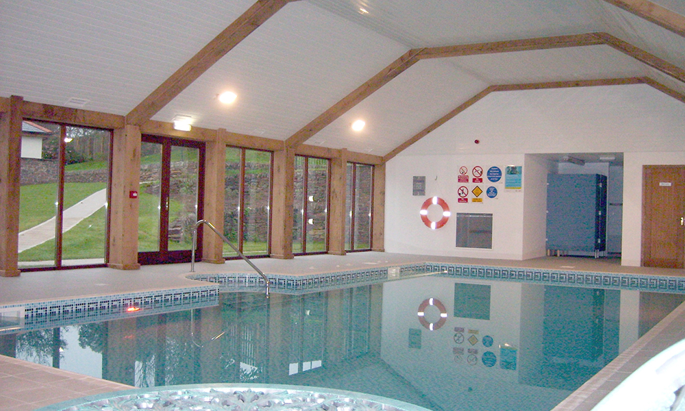 An indoor heated pool, children's play area and communal barbecue area are all on-site
