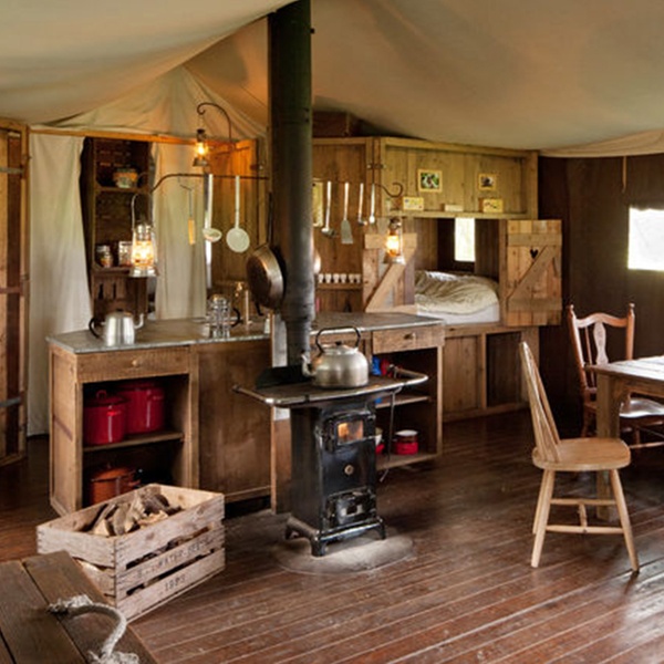 Each Canvas Lodge is a glamping tent featuring a cooking stove, sofa, cupboard bed, bunk bed and a master bedroom. Boasting 45 square metres of space, the tents include kitchen equipment such as pots and pans, glasses, coffee grinders and cold running tap water.