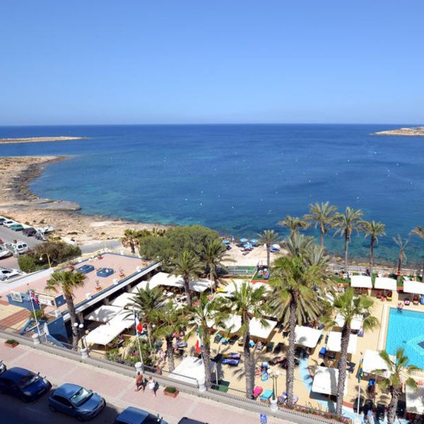 Overlooking the azure-blue waters of the Mediterranean Sea, Qawra Palace Hotel is perched on Qawra’s seafront, where the tranquil seaside ambience meets the world of four star hospitality. The hotel is located a short drive away from one of Malta’s most popular towns, St. Paul’s Bay.