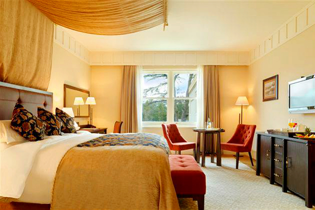 Blending the imposing facade of a Tudor castle with an opulent boutique interior, the five star Lough Eske Castle welcomes guests to acres of luxurious grounds on the ebbing shores of Lough Eske. The historic castle stands amid 43 acres of lush woodlands and landscaped gardens, filled with bronze sculptures and paths to the shimmering shores of the lough, while a relaxing countryside atmosphere gently flows through the majestic halls boasting solid oak furnishings, tranquil bars and open fireplaces.
