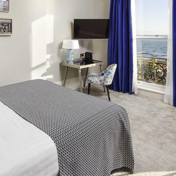 The hotel offers a range of well-appointed rooms, including standard, superior, and sea-view options. Rooms are styled with contemporary furnishings and feature comfortable bedding, en-suite bathrooms, Wi-Fi access, flat-screen TVs, and tea- and coffee-making facilities, with select rooms offering views across the English Channel.
