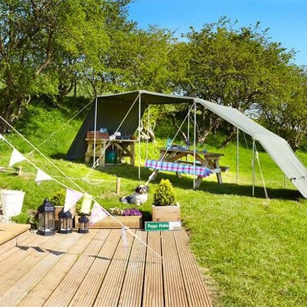 The tents are a short walk from the toilet and shower facilities, recycling facilities, children’s play area, an on-site shop, reception, information points, drinking water points and laundry services. Guests can also enjoy walks around the farm land.