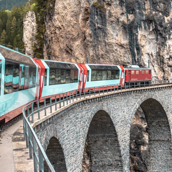The Bernina Express, a marvel of engineering, glides through the Swiss Alps, offering panoramic views of breathtaking landscapes. Majestic peaks, snow-covered and enchanting, tower above meadows and forests, creating a fairytale-like scene. As the train winds through alpine towns and crosses viaducts, it reveals cascading waterfalls and dizzying heights. Impeccable service and attentive staff enhance the journey, sharing stories that bring the landscape to life. The final stop in Tirano, nestled in the Italian Alps, echoes the region's Roman Empire legacy. Cobblestone streets and ancient architecture invite visitors to bask in the town's rich heritage. The Bernina Express is a harmonious blend of natural beauty and cultural marvels. It evokes wonder and reminds us of the treasures that await those who embark on this extraordinary adventure.