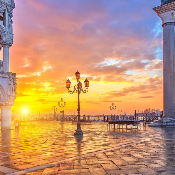 Tourists shouldn't miss out on the opportunity to visit the Doge’s Palace, a symbol of the republic’s wealth and mastery over land and sea. On the eastern end of St. Mark’s Square, the world-renowned Byzantine basilica has become a landmark of the city with its four bulbous domes and golden mosaics. Throughout the cobbled streets, there are countless shops where travellers can pick out unique handmade masks painted according to the 800-year-old Venetian tradition. Venice has a humid subtropical climate characterised by warm summers and cold winters. The sky is clear, with a moderate level of sunshine that invites holidaymakers to visit the city during autumn, while winter months bring an average high temperature of 6°C and three hours of sunshine per day.