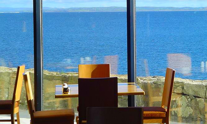 The Clashybann Restaurant features floor-to-ceiling windows with sweeping views over the bay, and a menu made up of locally sourced seafood and speciality dishes.