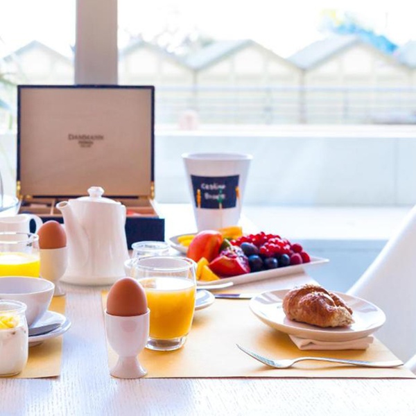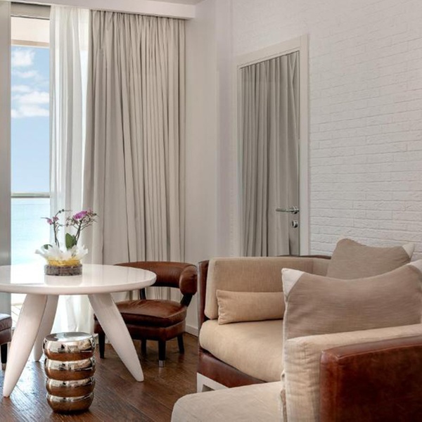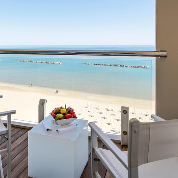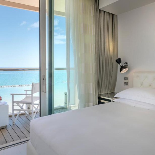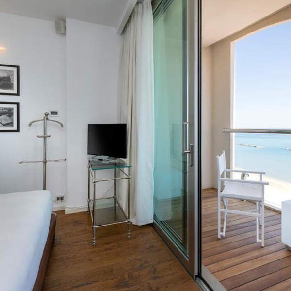 The hotel’s terrace makes for the perfect spot to unwind and take in the panoramic views of the sea, with a drink in hand.
