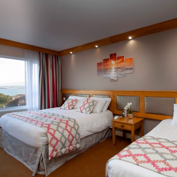 The restaurant serves a wide range of dishes using local produce such as 100% Irish beef, the hotel bar serves pub grub in a scenery with floor to ceiling windows towards the bay, while the lobby bar beckons with afternoon tea and a selection of drinks in the company of a roaring fire.