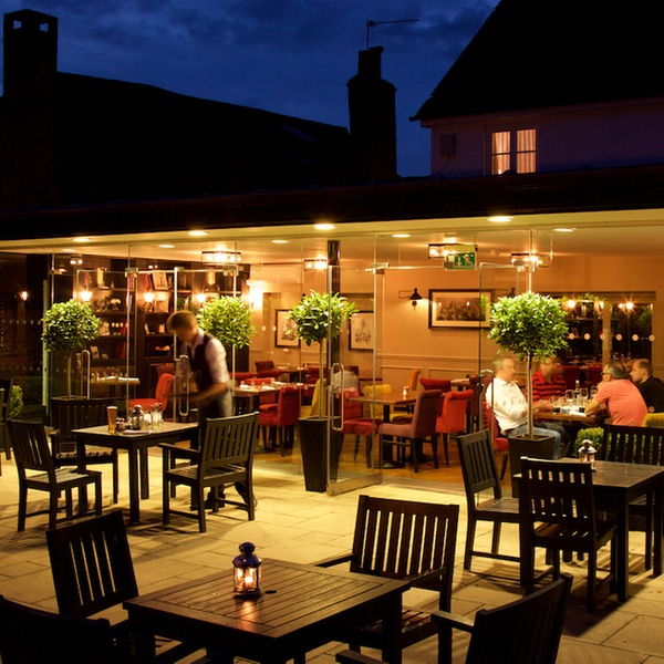 Guests can enjoy modern British cuisine at the award-winning restaurant, enhanced by striking design details such as a copper ceiling and glass wall, and views across the Champagne terrace and garden. For a more relaxed setting, the traditional bar—complete with 15th-century beams and crackling log fires—serves real ales, a selection of lighter dishes, and hearty full English breakfasts each morning.