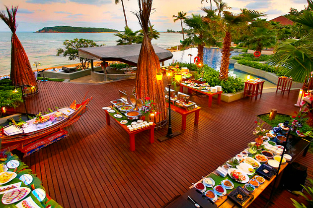 • On the Koh Samui Island, Nora Buri Resort and Spa beckons with local plates, as seafood barbecue dishes and Western cuisine are served in the Barge Restaurant, buffet breakfasts may be savoured at the Menora Restaurant, while the Rice Terrace provides authentic Thai specialties and wines complemented by live entertainment.