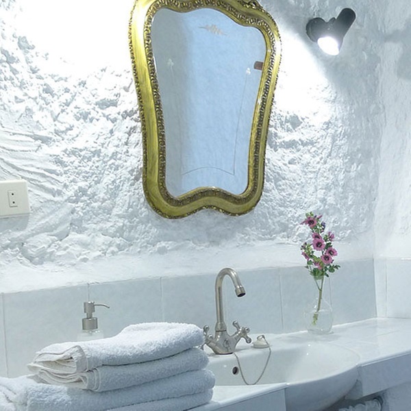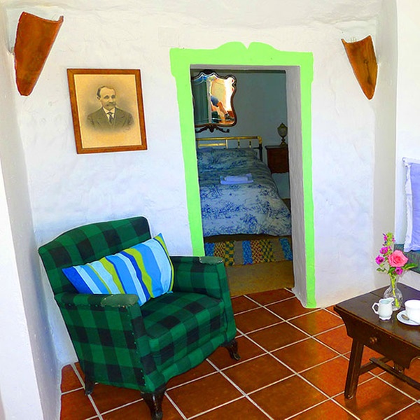 Heated by a fireplace, and electric heating during the winter, the cave house includes a parlour with patio access, as well as a kitchen complete with a small grill oven, kettle and toaster. Guests will lay their head in the bedroom, fitted with a double bed.