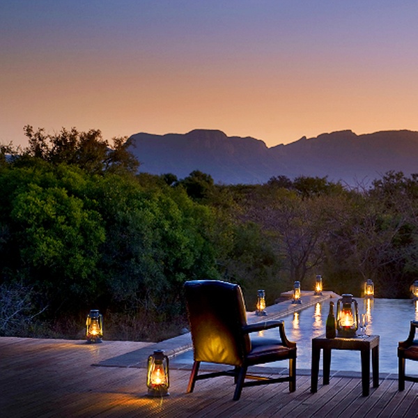 • The on-site restaurant serves a unique blend of European and traditional dishes in either the private chalet patios or deck area, where a South African Boma is mounted to grill meats.