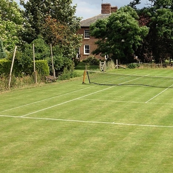 - Fire pit, BBQ area, grass tennis, and croquet court