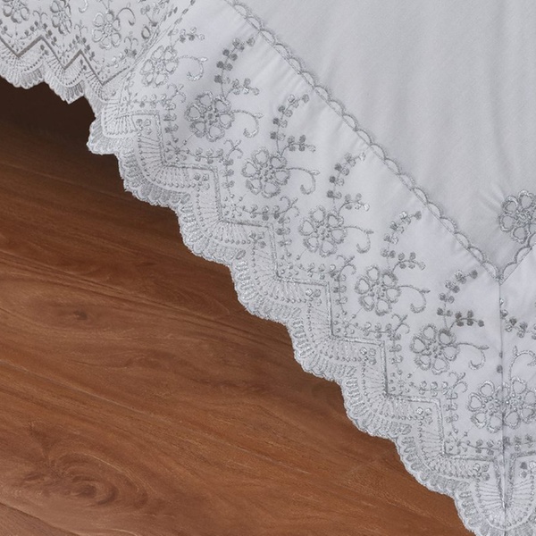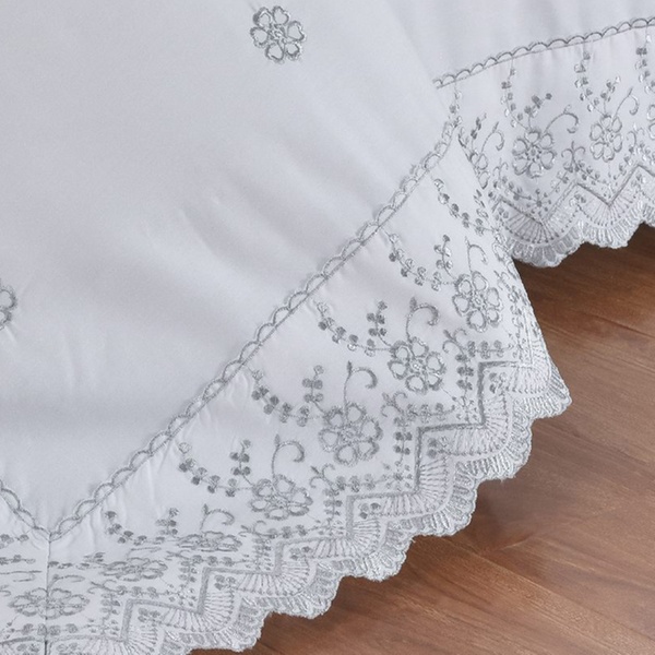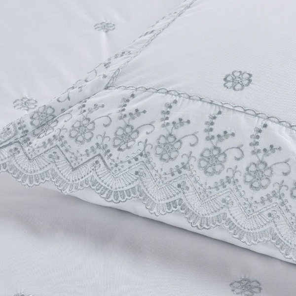 This exquisite bedding collection features delicate floral embroidery and elegant lace trim for a timeless look, made from a soft, breathable polycotton blend with matching pillowcase(s) included