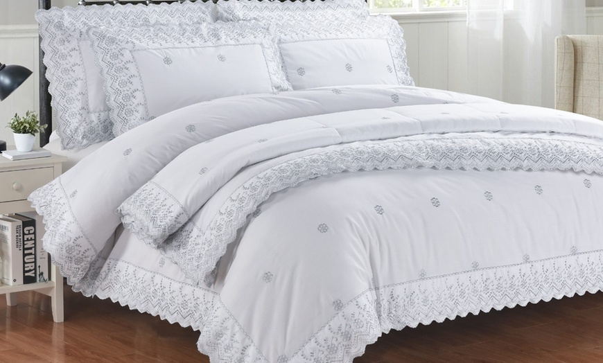 Today's Groupon offers Gabrielle Embroidered Lace Duvet Set, distributed by Rapport Home.