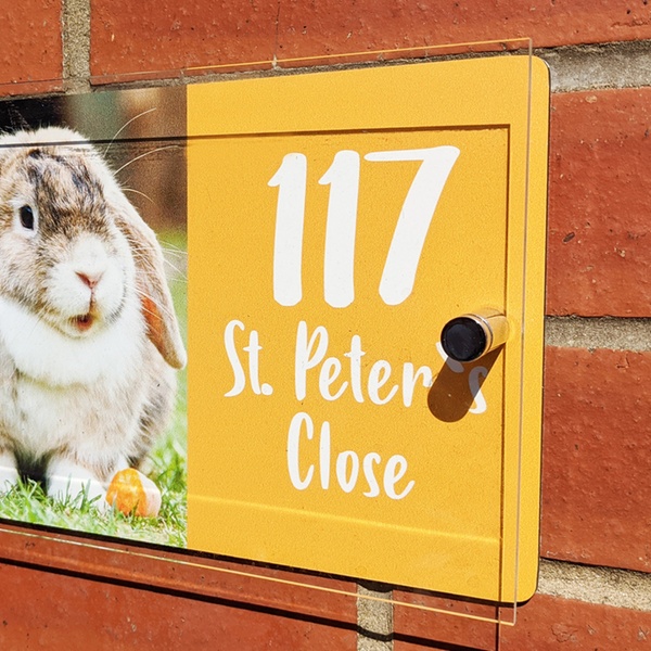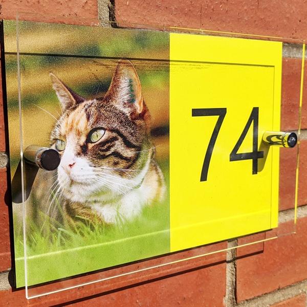 Customers can personalise their house sign with an image of a favourite pet; a range of colours and fonts is available