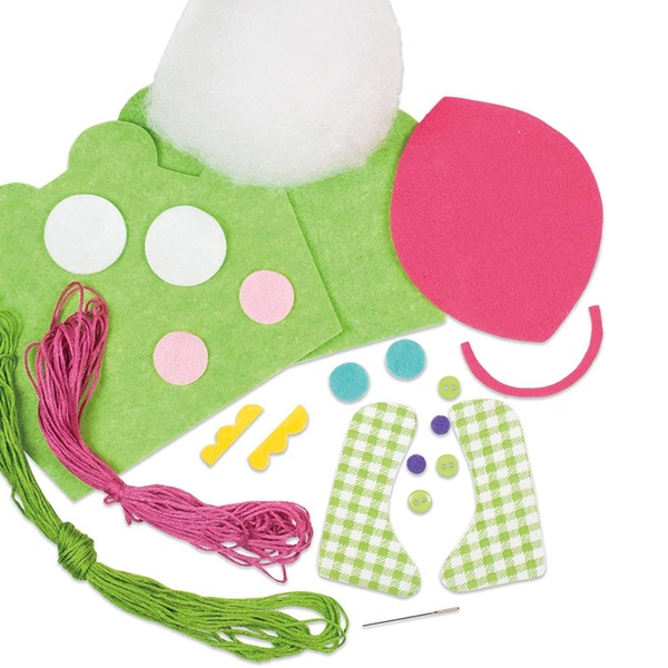 Create a cute bunny, frog or puppy soft toy with this easy sewing kit, designed to be a good introduction to sewing