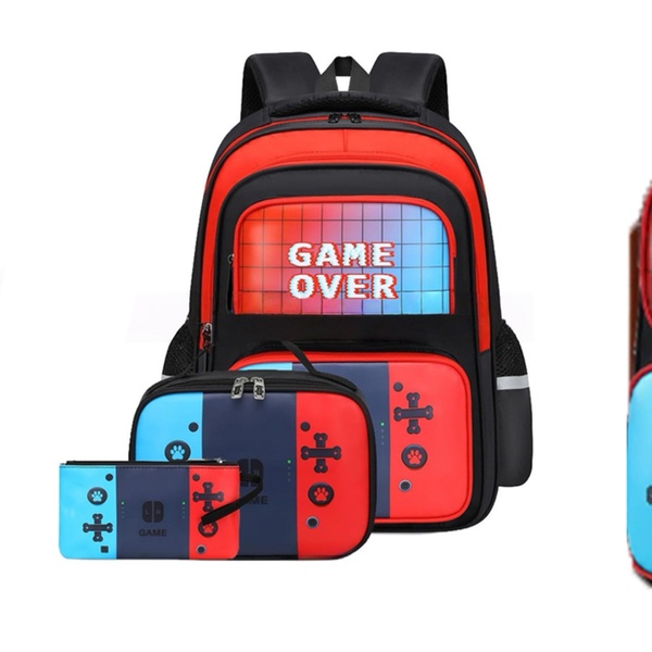 Gear up for adventure with a vibrant 3-piece gamer backpack set, designed to keep books, supplies, and snacks safe and stylish