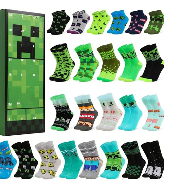 Unwrap 24 days of cozy fun with vibrant Minecraft-themed socks, perfect for keeping young gamers stylishly comfy all holiday season
