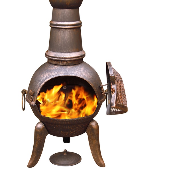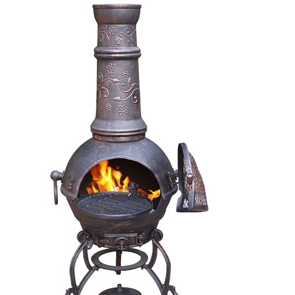 Toledo Cast Iron Chimenea - Large Flowers in Bronze