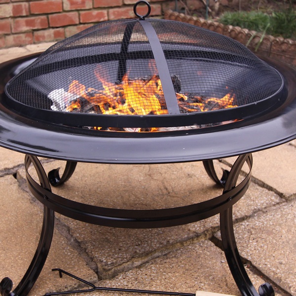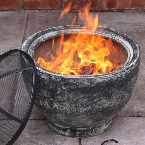- Material: fire bowl made of clay, mesh spark guard made of steel