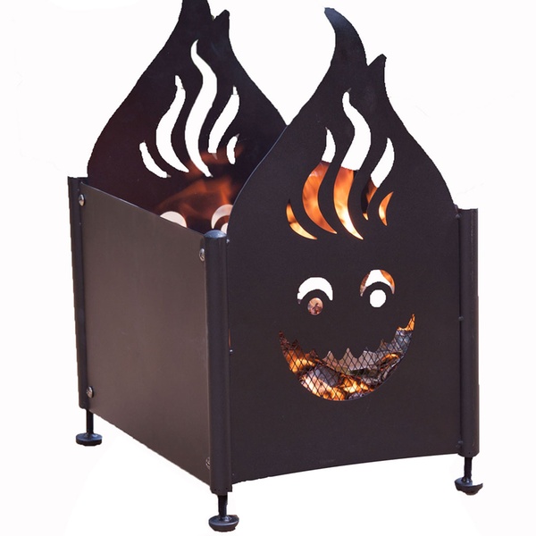 - Simple rectangular fire pit with fun face and flame cutouts for a lively atmosphere
