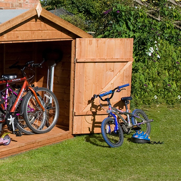 Designed to comfortably house two adult bicycles, this bike storage unit can easily be adapted for garden tools or garden accessories