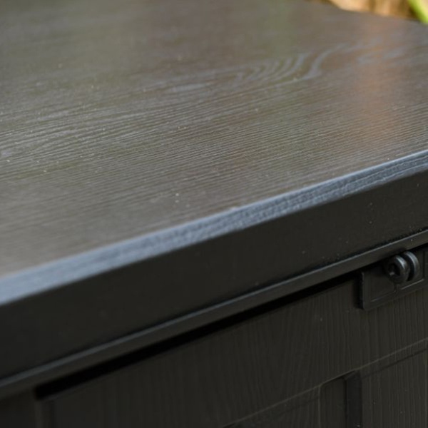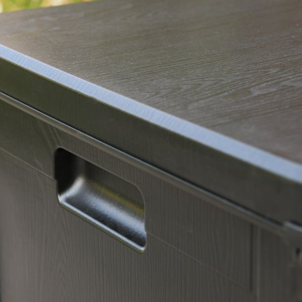 - Stylish and practical: dark brown wood-effect finish blends seamlessly into any garden setting