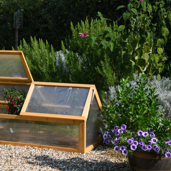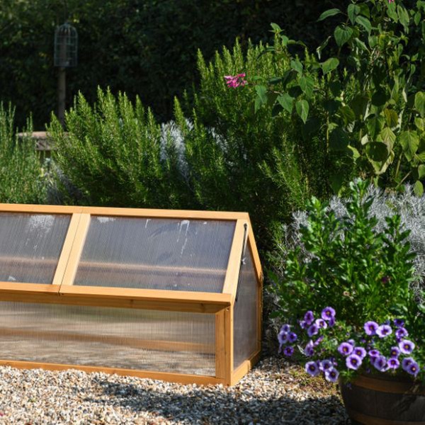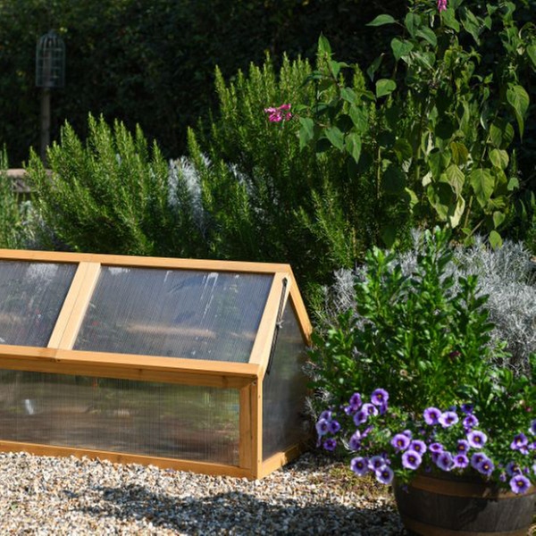 Extend the growing season and keep the plants protected from harsh weather conditions with this wooden cold frame