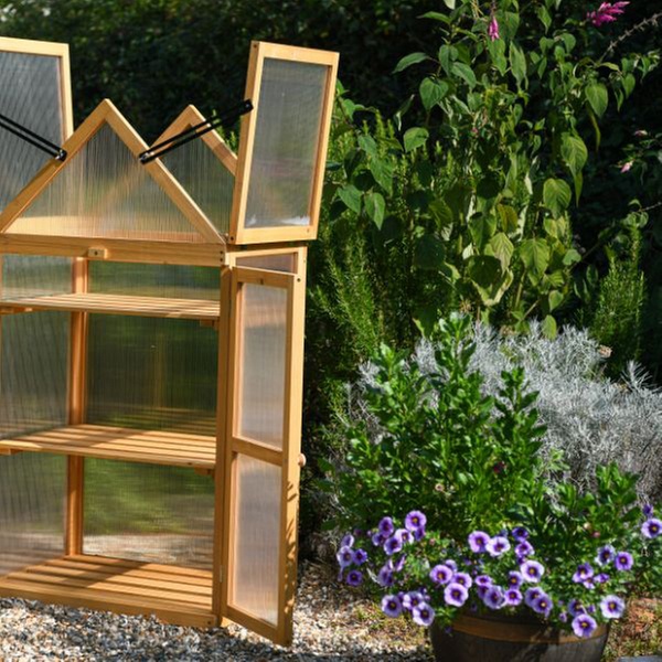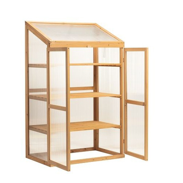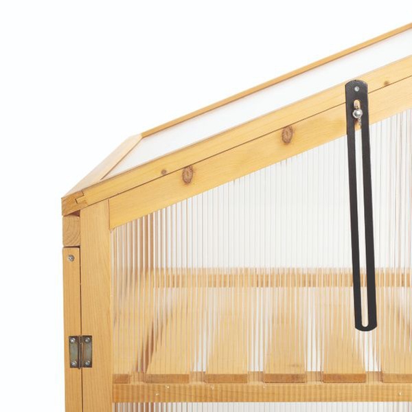 • Crafted from sturdy fir wood with durable polycarbonate panels