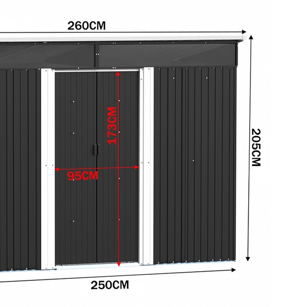 - Galvanized steel base ensures stability and durability, adding to the overall robustness of the storage shed