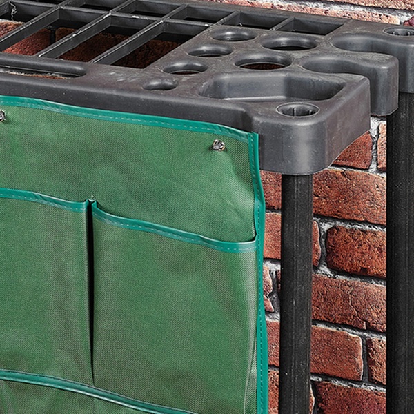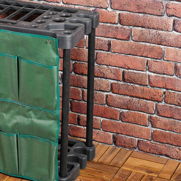 Featuring six pocket holders for smaller tools as well as storage slots for spades, shovels and more, this rack can be ideal for gardens