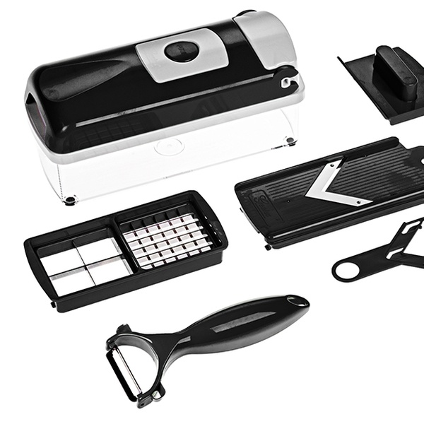 Designed to help in the kitchen, this Genius Nicer Dicer six-piece cutting set includes a peeler and a cutting cover