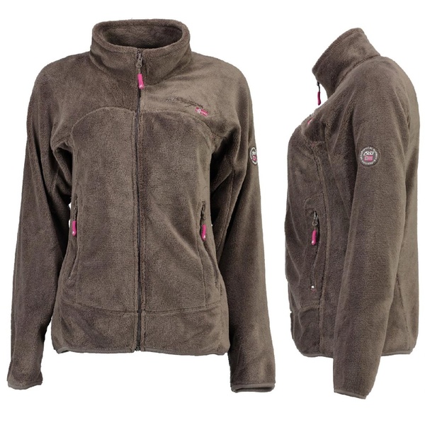 Featuring an embroidery on the bottom sleeve, this women’s fleece jacket can look great with jeans and ankle boots