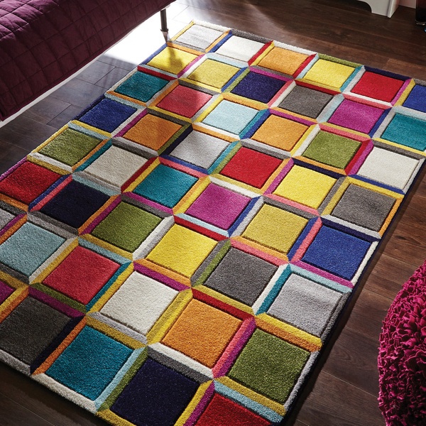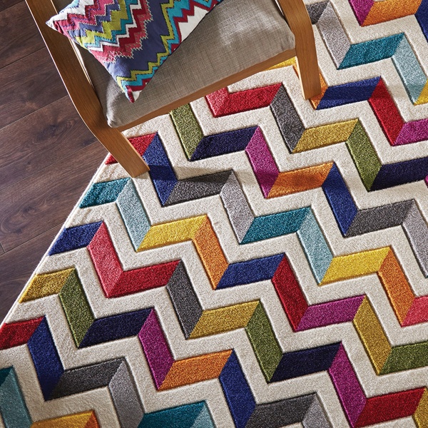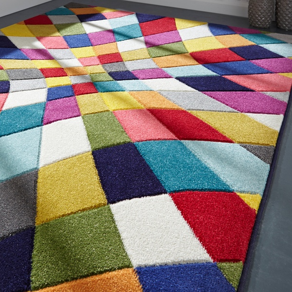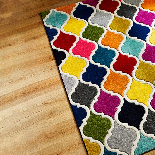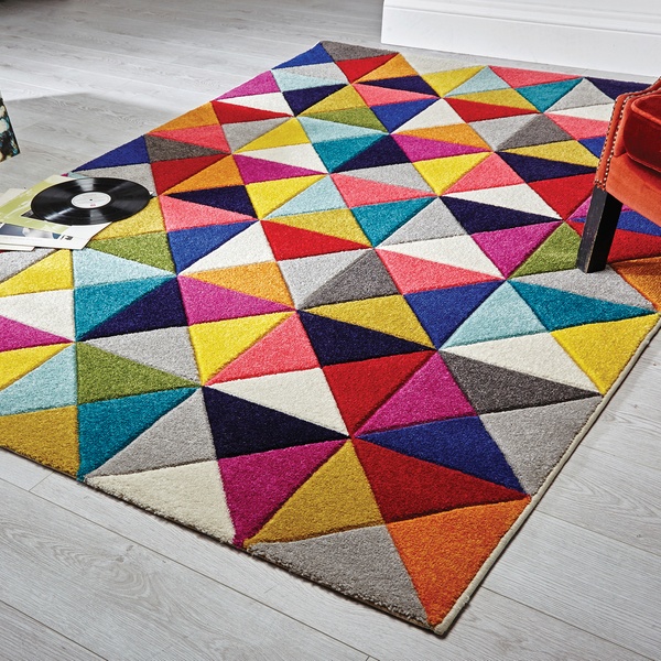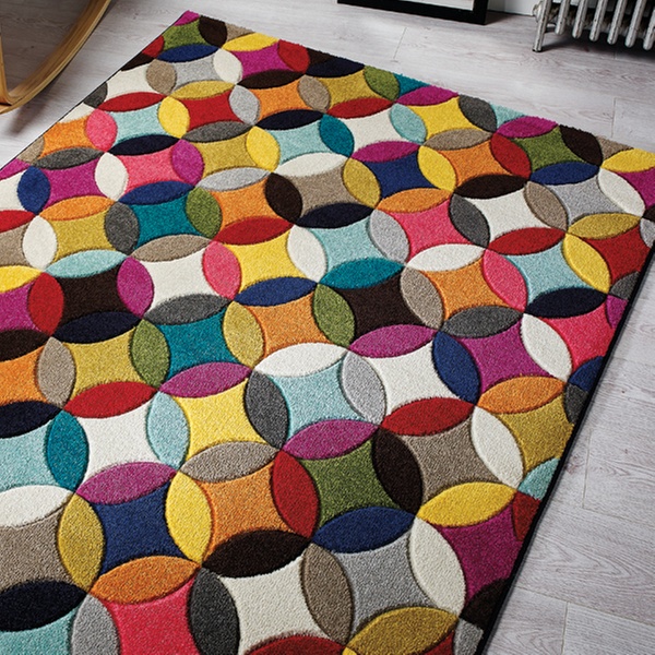 Add a touch of modern style to a living room with one of these colourful rugs that are available in seven different designs