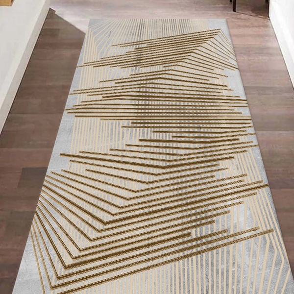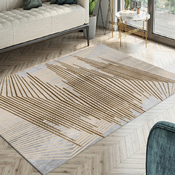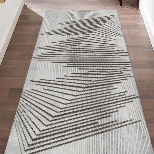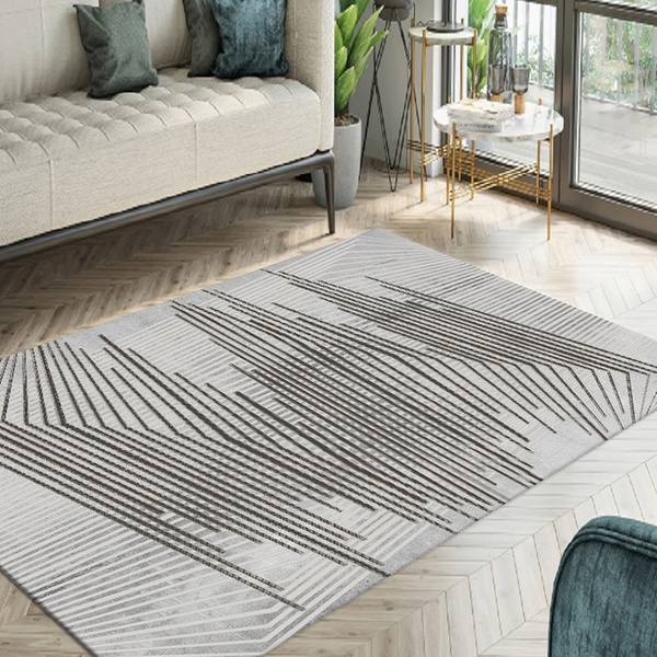 Featuring an eye-catching geometric pattern, this rug with an anti-slip mat can add a touch of modern style to living rooms or bedrooms