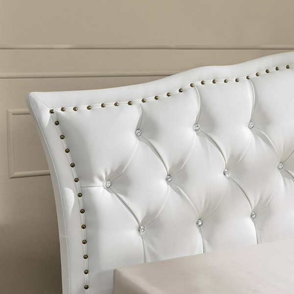 Add a touch of comfort the bedroom with this faux-leather bed featuring a diamante headboard and an optional bonnell spring mattress