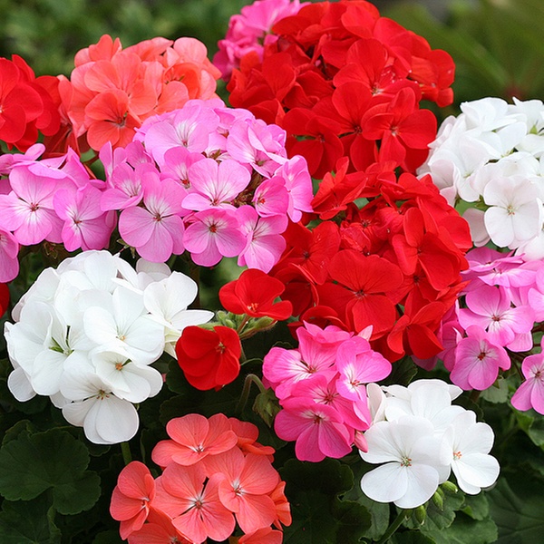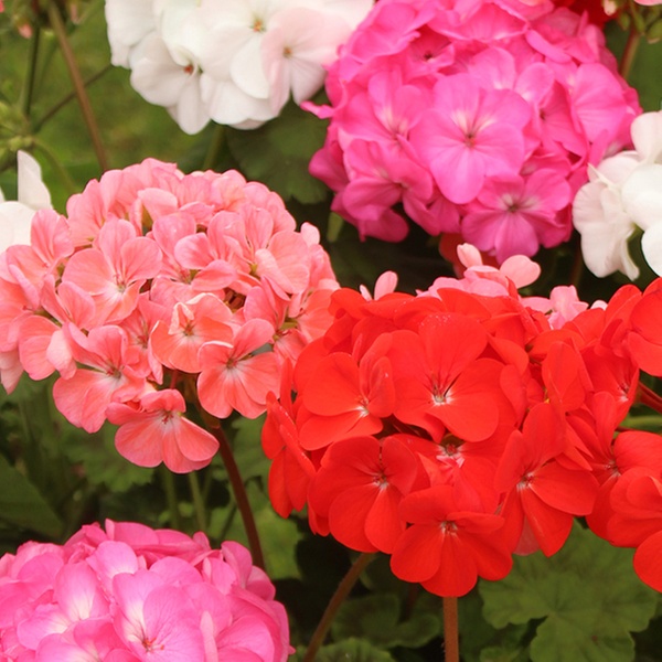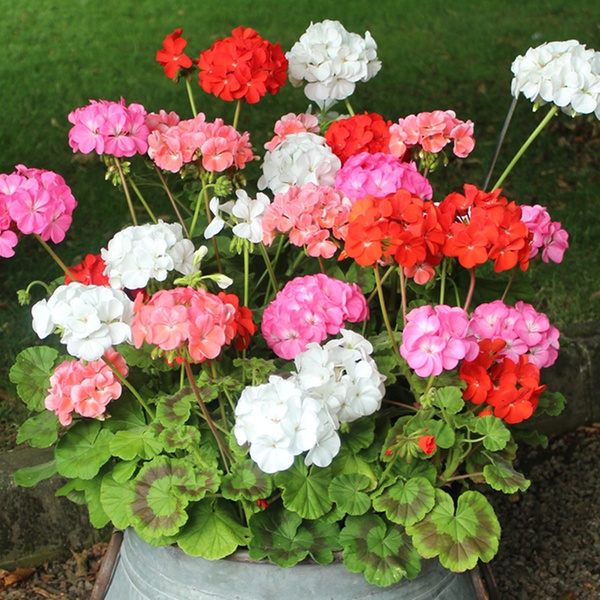 • Features classic summer flowering geraniums in reds, pinks, and whites