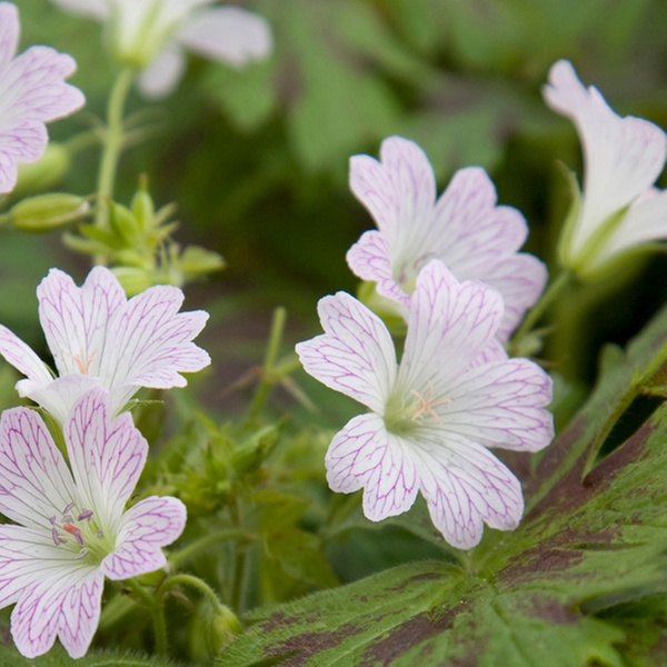 A selection of pink cranesbill Geranium plants are suitable as ground cover plants that flower for up to five months at a time