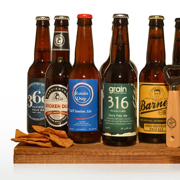 - £8.99 for eight bottles of craft beer, wooden handle bottle opener and tortilla chips (71% off)